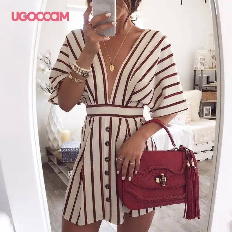 Женское элегантное платье с принтом в полоску UGOCCAM, летнее ...
